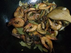 加入炸好虾煸炒一分钟左右~ 0K