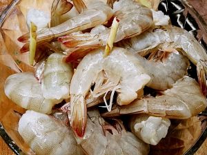虾去头去尾,用清水泡20分钟,发点醋和盐去腥味。
