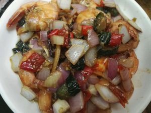 翻炒至虾全部变色,汤汁浓稠后,关火,出锅!(厨房灯有点暗,照片不清楚!)