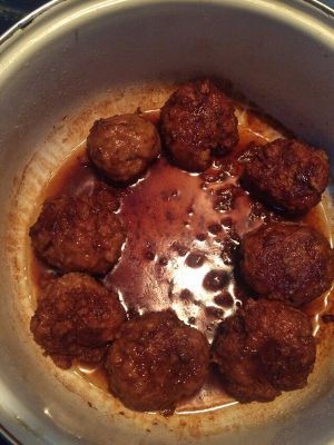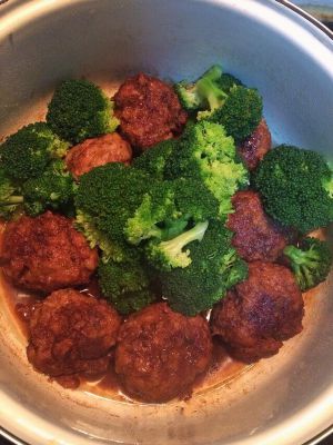 锅中放水,把炸好的肉丸放入,水埋到肉丸三分之二处,加调料酱油,料酒、八角一个、大葱,冰糖用中火焖煮十分钟左右至熟透,最后放味精用淀粉勾芡收汁。(味精在高温下会成生一种物质对身体有一定危害,所以我养成习惯出锅前放味精)