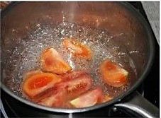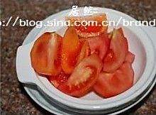 (我以为冰箱还有高汤,到要煮汤时才发现用完了,所以也是用的清水代替的)水烧开,放入番茄,