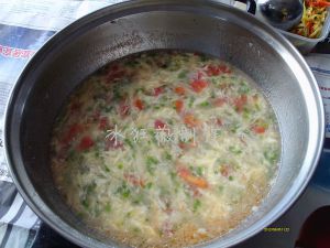 放盐,鸡精调味,(可加少量水淀粉) 关火淋入鸡蛋液撒上葱花,3分钟后即可出锅!