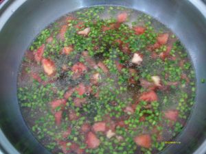 放入韭菜花,锅里倒入适量的水,煮滚。