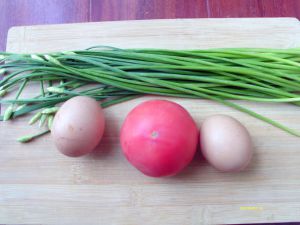韭菜花洗净切细小段,番茄切成小丁,鸡蛋打散备用。