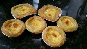 烤到起焦色就好!~烤箱温度不要过高,否则容易把蛋挞皮烤胡!~大概烤二十至二十五分钟!!!~美味的蛋挞就做成了!~