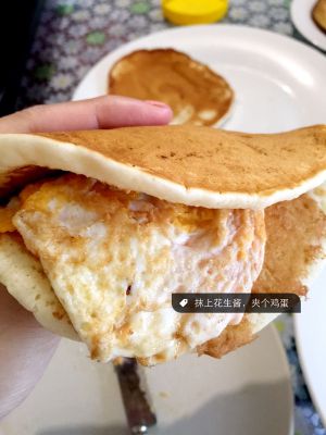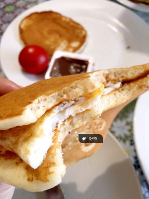 第三步:把鸡蛋放在凉快松饼之间。就完成啦!so easy