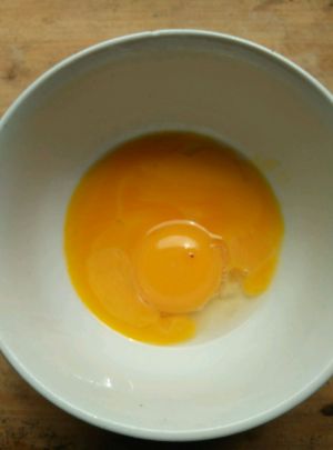 鸡蛋去蛋清打入碗中.加少许盐搅伴均匀。