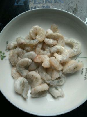 虾仁清洗干净.加盐.料酒.胡椒粉码味十分钟。