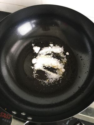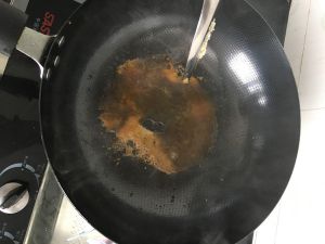 趁着锅还热放适量糖,要一直搅拌,适当开小火。