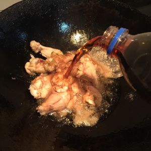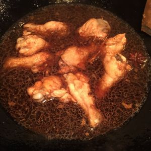腌制20到40分钟起可,放入油锅中炸至金黄色,倒入腌料和可乐,用小火慢慢收汁,成酱色即可。