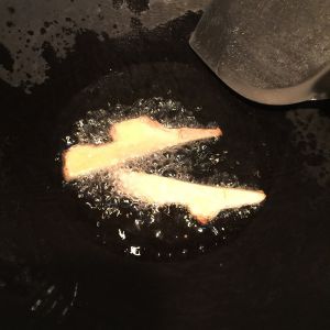 油锅烧热炒姜片