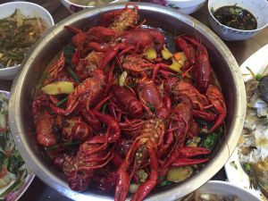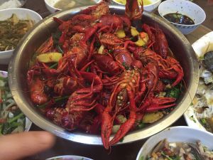 然后加入小龙虾翻炒至变色加水烧开调味,我加了自制的牛肉辣酱,出锅后的小龙虾味道特别香!