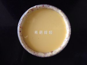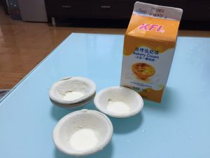 挞皮从冰箱取出后,将蛋挞水倒入其中
