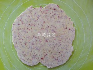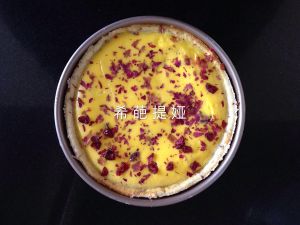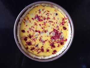 表面撒上切碎的蔓越莓干和玫瑰花瓣,再入烤箱190度,再烤15min
