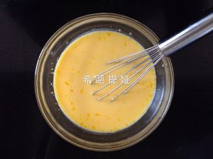 将牛奶、细砂糖、蛋黄和吉士粉混合搅拌均匀