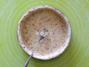 用叉子在挞皮底部扎上小孔,再放冰箱1h