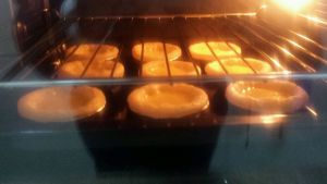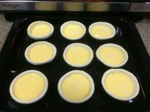 把挞浆倒入挞皮,送入烤箱,30分钟——OK!
