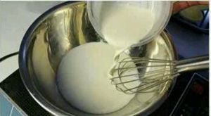 鸡蛋跟糖先混合,再加入牛奶搅拌后过筛,两次口感更细腻。