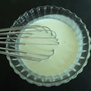 1、先将鸡蛋打散,加入牛奶,糖,玉米淀粉均匀