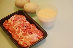 瘦肉切块,用盐、料酒、玉米淀粉和油腌制1小时以上。