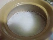 将瓦煲里的大米和水用大火烧开后,转中小火煮。