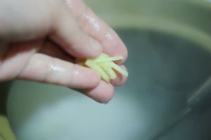 加入1小勺盐,1小勺淀粉和1小勺油。用手抓匀腌上15分钟。