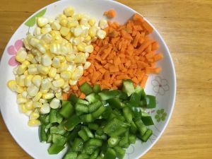炒好的海鲜加入米饭中,再加入杂蔬,小葱,均匀的搅拌下。