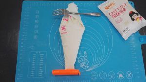 把芝士馅装入裱花袋中,剪一个大口。