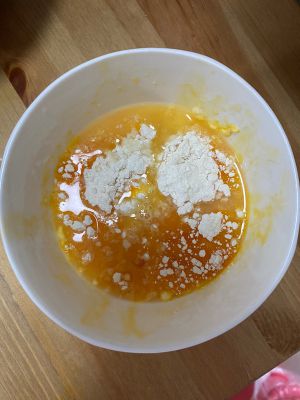蛋黄打散 加入半瓶酸奶 10g糖粉