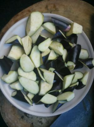 茄子切块儿,切薄一点