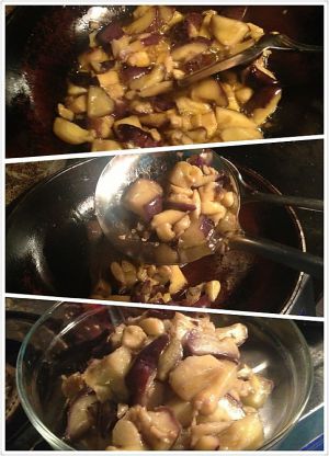 茄子滚刀块,肉洗净切片用料酒泡着,蒜拍末。锅中多些油,下茄子过油去水分。茄子在不断翻炒中会经历吸油和出油出水的过程,所以待锅中油回来并且茄子变软之后便可控油捞出。