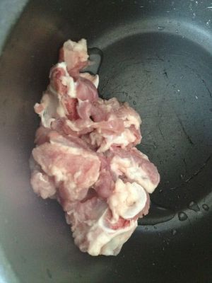 炖烂的排骨取出,新起一锅水,烧开,倒入少量炖排骨时的汤汁,将青菜烫熟。
