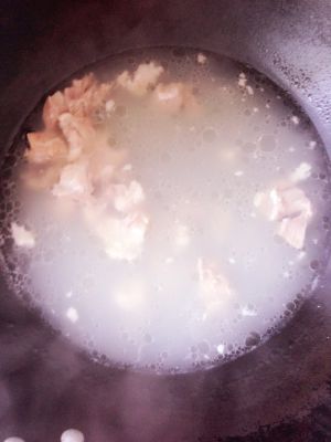 排骨放冷水里,烧开焯一下,去掉肉中的血泡,捞出沥干水分。