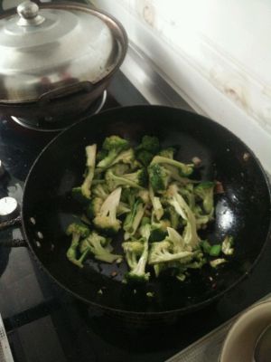 适量油下锅,葱蒜入锅,炸出香味,放西蓝花,放盐,加点水,洗吃软的闷一会即可。