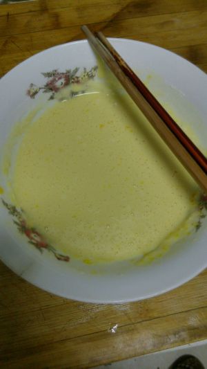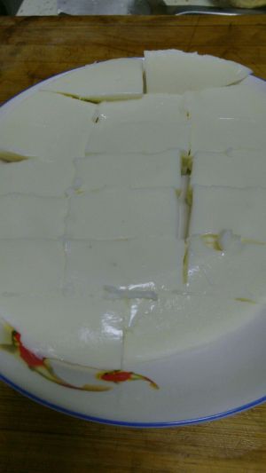 少拍了一步,就是冷藏好了以后切成小块或者小条都可以,将水,面,鸡蛋拌匀