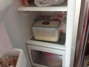 将牛奶倒入锅中,加玉米淀粉,白糖,小火,不停搅扰,最后会呈沙拉或酸奶状,盛出,放凉,冷冻一小时以上~