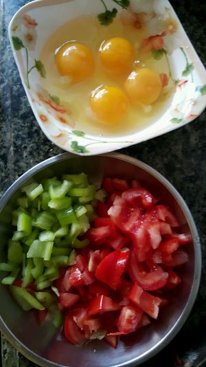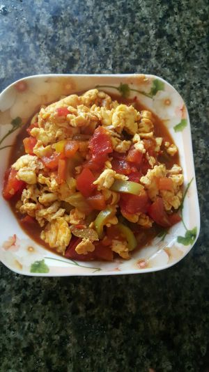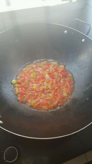 西红柿青椒煮稠,可加点水,然后放鸡蛋下去。