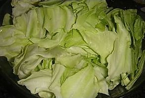 第一步,将圆白菜手撕成小块,然后用水洗干净。