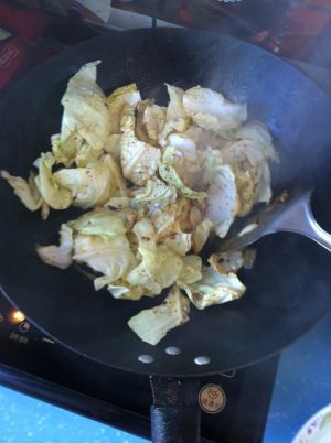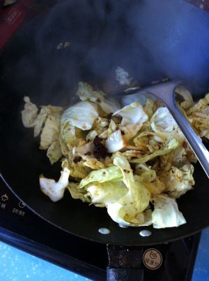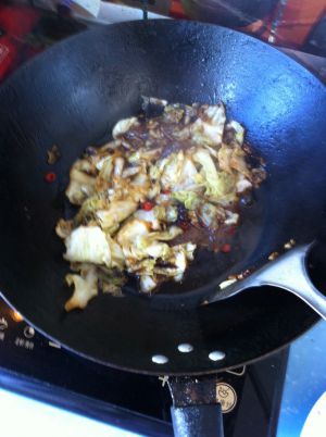 倒入包菜大火翻炒至断生,调入上述调料翻炒均匀即可。