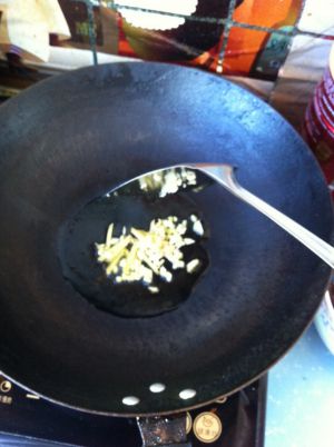 热锅下油,油热放入备好的辣椒、大蒜煸香。