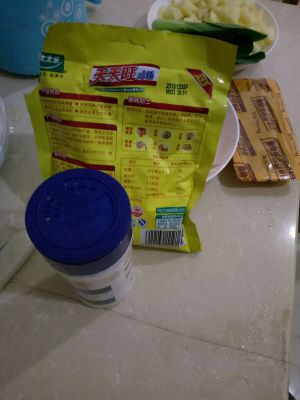 然后下包菜炒软,加蒸鱼豉油翻炒。撒一点点盐,最后加一点点鸡精味精,翻拌均匀出锅。