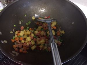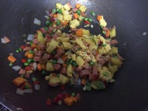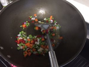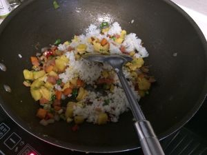 加入热米饭~快速翻炒~2分钟~加盐,鸡精调味!出锅!