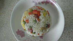 1.首先我们要炒一下鸡蛋,然后将鸡蛋盛出来 2.再起锅,油热后先把洋葱炒香,然后将香菇和胡萝卜丁放入煸熟,加入玉米粒豌豆粒和腰果然后下米饭,加入菠萝块儿,在锅底腾出一块地儿放入咖喱,加少量水待咖喱融化后翻炒,颠锅直至米饭和蔬菜上色均匀,根据个人口味加盐