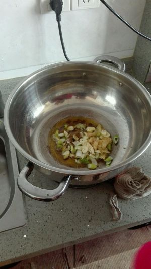 热油爆香后放入材料
