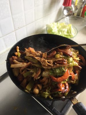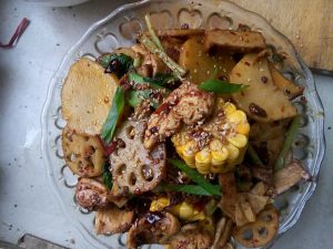 食材得提前煮好煮熟,这一步其实应该是第一步。然后倒入已经炒出红油的锅里,持续翻炒,直到感觉所有食材都与红油亲密接触过了,尝一下,感觉可以就出锅,感觉不行就放一勺鸡精再出锅。