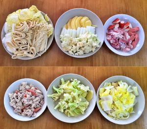 蔬菜和肉类都切好,锅里烧水煮熟捞出备用,一定要控水!