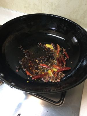 锅中放油烧热放葱姜蒜,花椒,辣椒炒香。