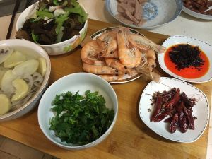 把喜欢的菜都切好,拿开水燥熟 花椒 辣子放好备用 还有几片姜