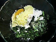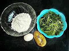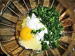 面粉,鸡蛋,芹菜叶放入碗中。