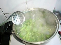 芹菜也焯烫过凉切碎。